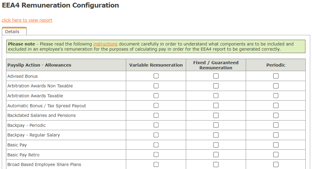 In order for the EEA4 Statutory Report to generate the remuneration accurately, the components that need to be included should be indicated on the Employment Equity Config screen.