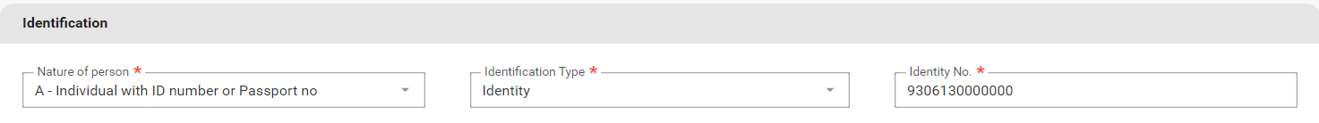 Person and ID number entered is correctly captured in the respective fields on the Tax Profile screen.