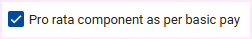 To prorate a component as per the Basic Pay, activate the "pro rata component as per basic pay" checkbox under "extra options" section of the component.