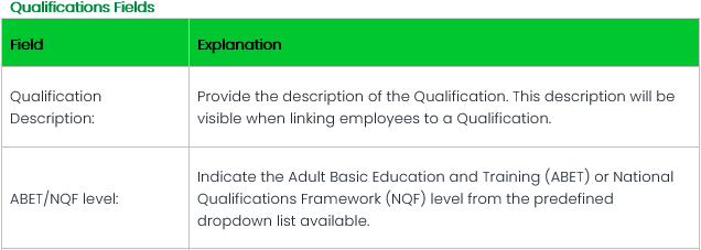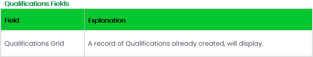 Qualifications employees have obtained, should be added on the Company Qualifications Screen before it can be linked on the individual employee’s record.