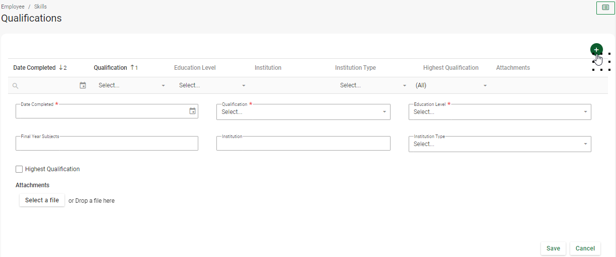 Once the Qualification has been created on company level, you can proceed to add the Qualification on the individual employee’s record.