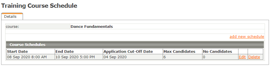 The Company Training Course Schedule Screen