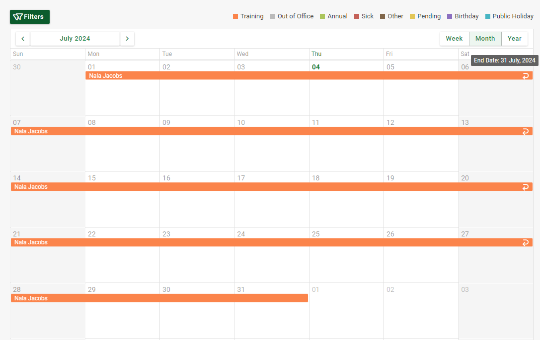 Since all employees have access to the Training Calendar Screen through their ESS Profiles, the HR Administrator notifies all employees that they can enrol themselves if interested in attending the course.