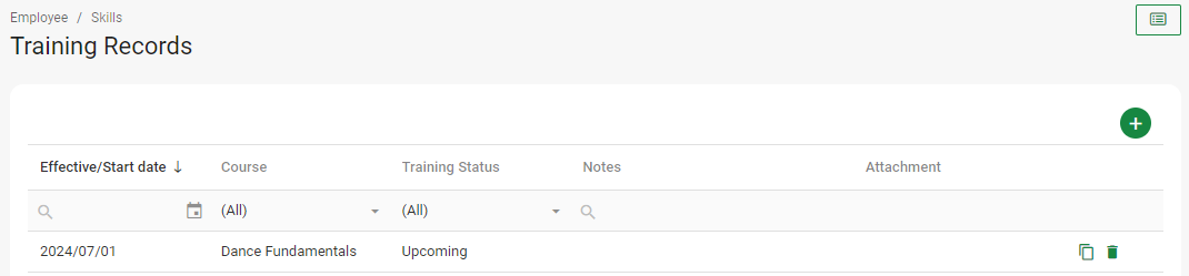 To add a training record, select the + Record option.