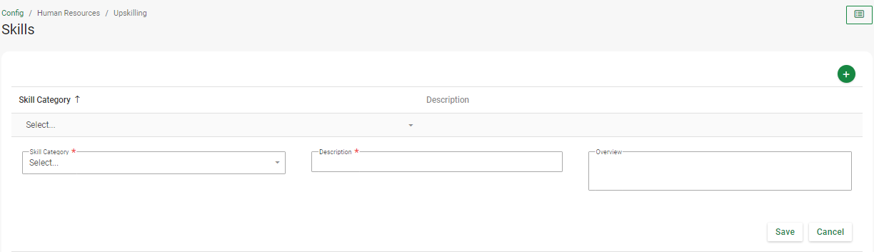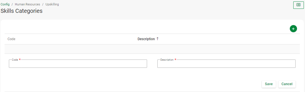 Navigate Config > Human Resources > Upskilling > Skills Categories