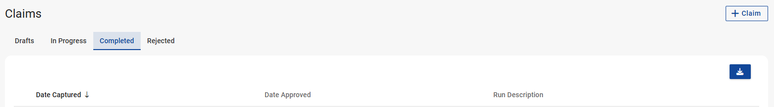 A Completed Claims report can be downloaded directly from the "Completed" tab on an employee's Claims screen, by selecting the "download" icon on the right corner of the tab.