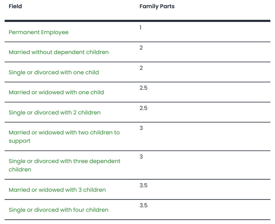 The dependent type and marital status on the dependant screen are considered in the tax calculation to the max of 5 parts.