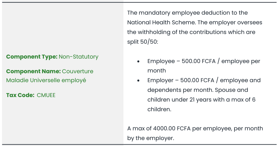 Ivory Coast | Why are dependents not included in Couverture Maladie Universelle employé component calculation?