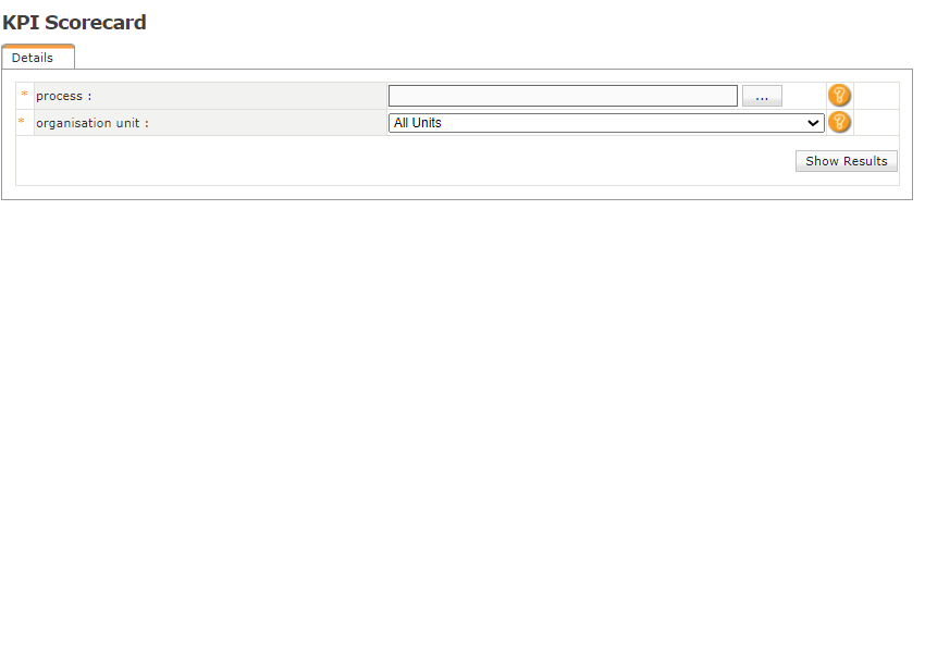 Company Settings > Human Resources > Performance Management > Target KPI Key Performance Indicators (KPIs) Details Process: Enter the name of the process related to this KPI. Indicator: Select an indicator from the available list that is related to ...