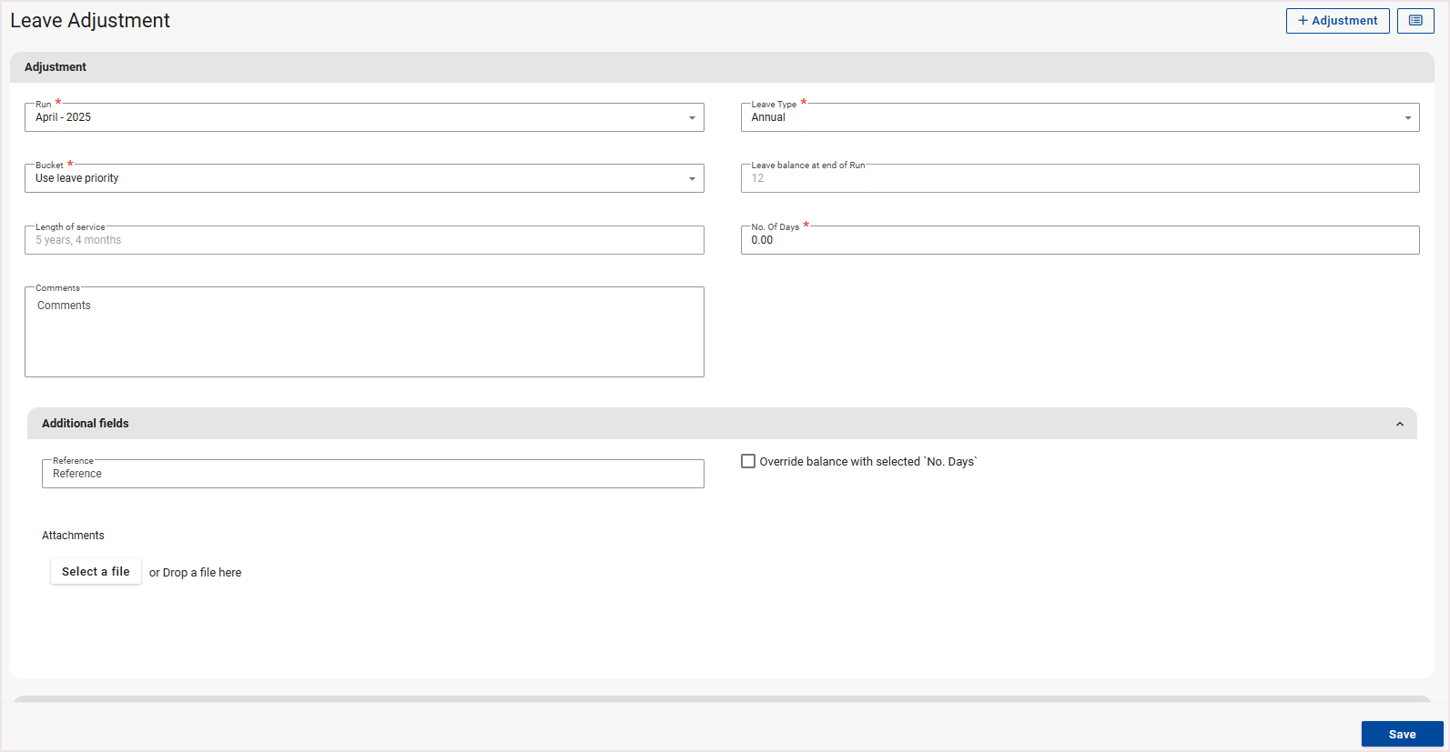 Leave | The Leave Adjustments Screen