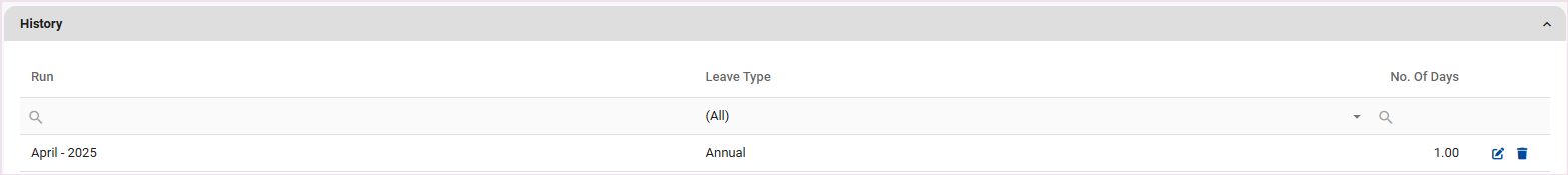Leave adjustments are processed by the Company Level User on the Leave Adjustments Screen.