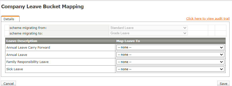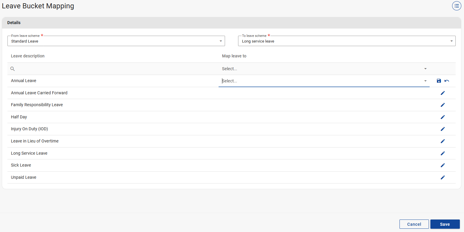 After selecting the option to migrate the leave, select the buckets to which leave needs to be mapped to and save your changes.