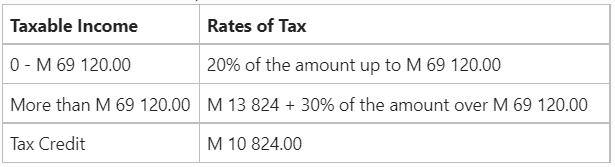 The Minister of Finance published the Income Tax (AMA) Regulations No.25 of 2024. The Regulation includes the following amendments: The tax credit Increased from M 10 824.00 (M902.00 per month) to M 11 040.00(M 920 per month). Increase in the minimum ...