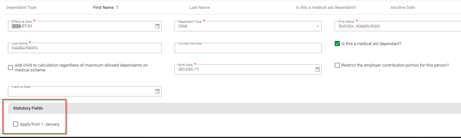 The tick on the dependants' screen to "Apply from 1 January" under the statutory field will needs to be selected to apply the relief.