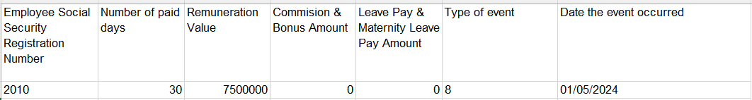 The monthly INSS social security submission report contains a section for any event type to cater to scenarios where an employee record did not contribute for a specific period ranging from either days, weeks or months while in the employment of a company.