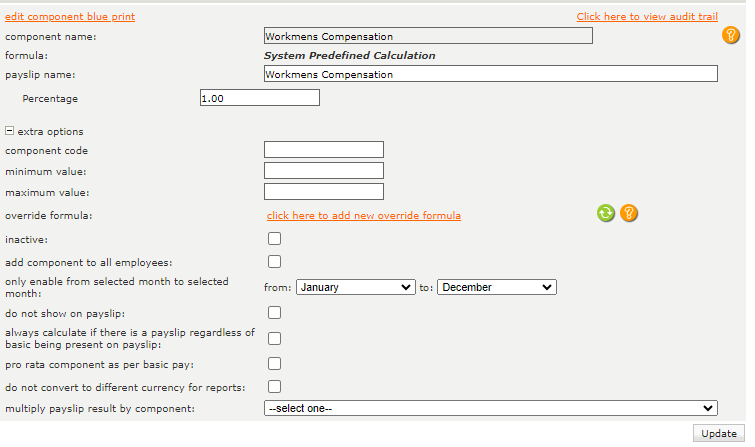 Users may add the payroll component and specify the relevant percentage to apply within the calculation.