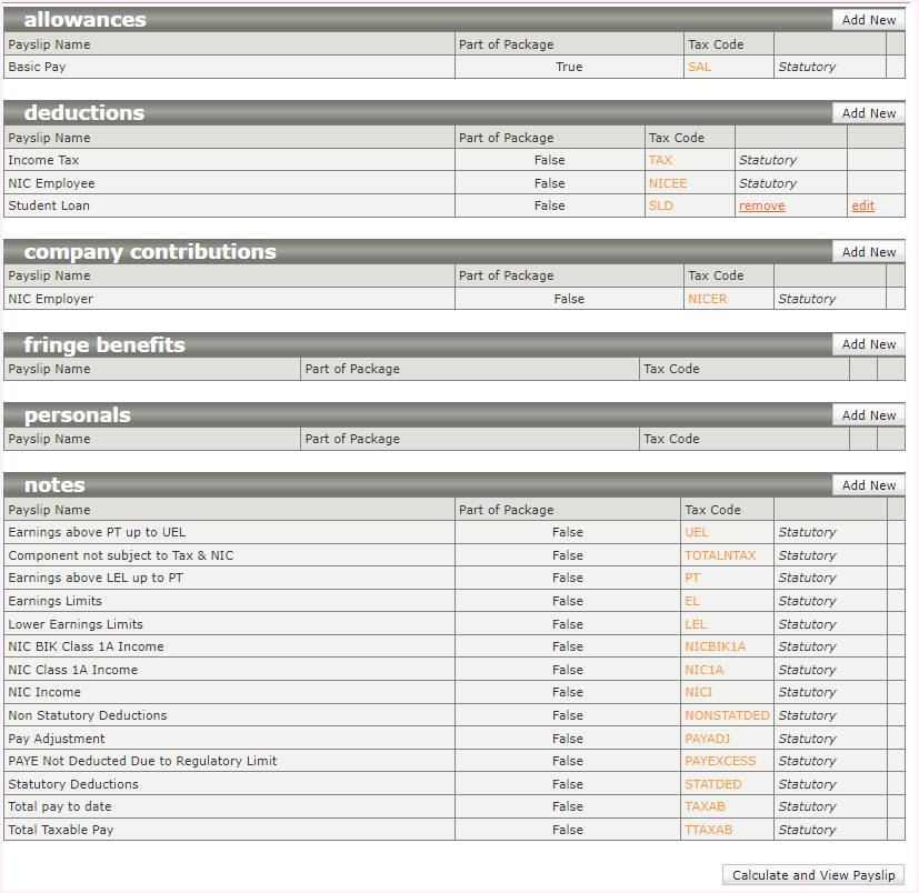 To Add the Recurring Payroll component select the Add New option next to the payslip action and proceed to add the relevant recurring components and then click on Calculate and View Payslip.