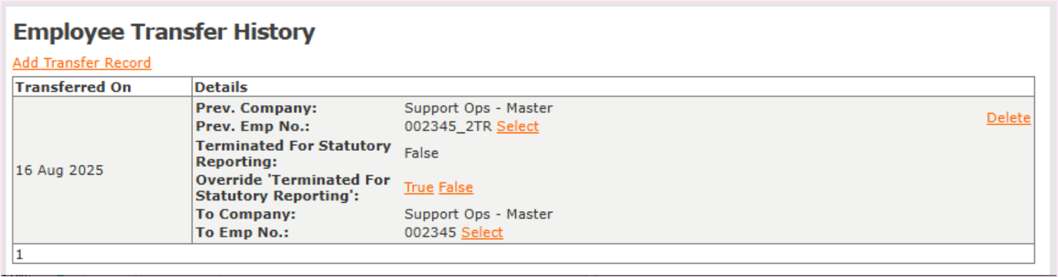 Retaining the Employee Number: When transferring between companies, the same number can be retained in both companies. This needs to be set-up on Company Level.