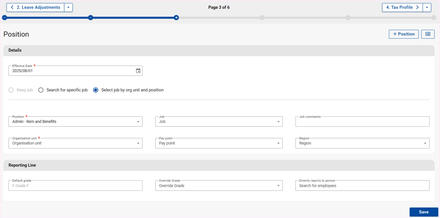 - Following the workflow path, you will be able to capture the relevant details of the employee in the new entity.