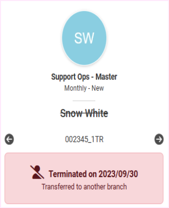 Upon accessing the terminated record, the Transfer Notification will be visible from the Location Menu.