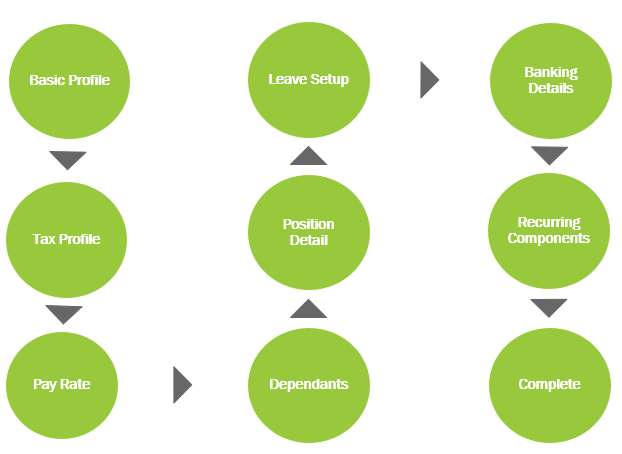 - The Add New Employee Workflow must be completed for the employee to be onboarded onto the payroll. It is advisable to obtain all the employee information before the payroll onboarding process commences.