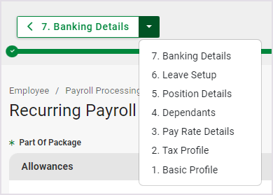 While adding the new employee, you can navigate to a previous screen in the workflow path from the Progress Bar.
