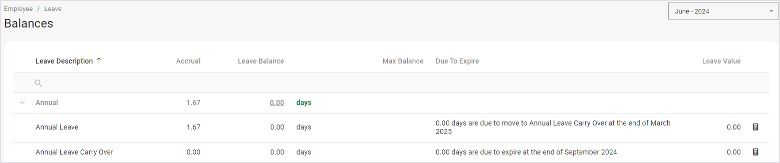 The employees Leave Balances Screen will reflect zero for Annual Leave.
