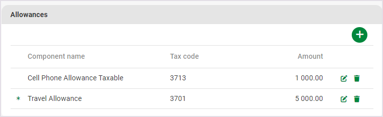 Important! When components are added on company level, you can choose the In Package-indicator. This will enable you to indicate whether a component is part of the employee’s package as specified on the Pay Rate Details screen. All components that are part of the package, are indicated with an asterisk.