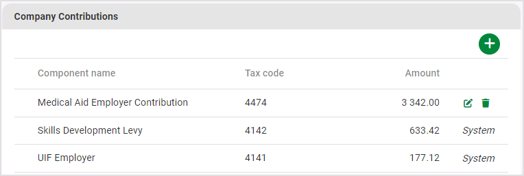 Company Contributions: are contributions which the company provides to the employee.