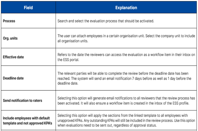 Once the KPA’s and KPI’s have been processed and mutually approved by the manager and the employee, the review process can commence. This process is activated by the Company Level User and can be executed in bulk or for an individual employee.