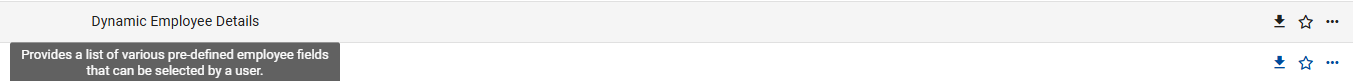 The Dynamic Employee Details provides a list of various predefined employee fields that can be defined to build a report according to the users requirements.