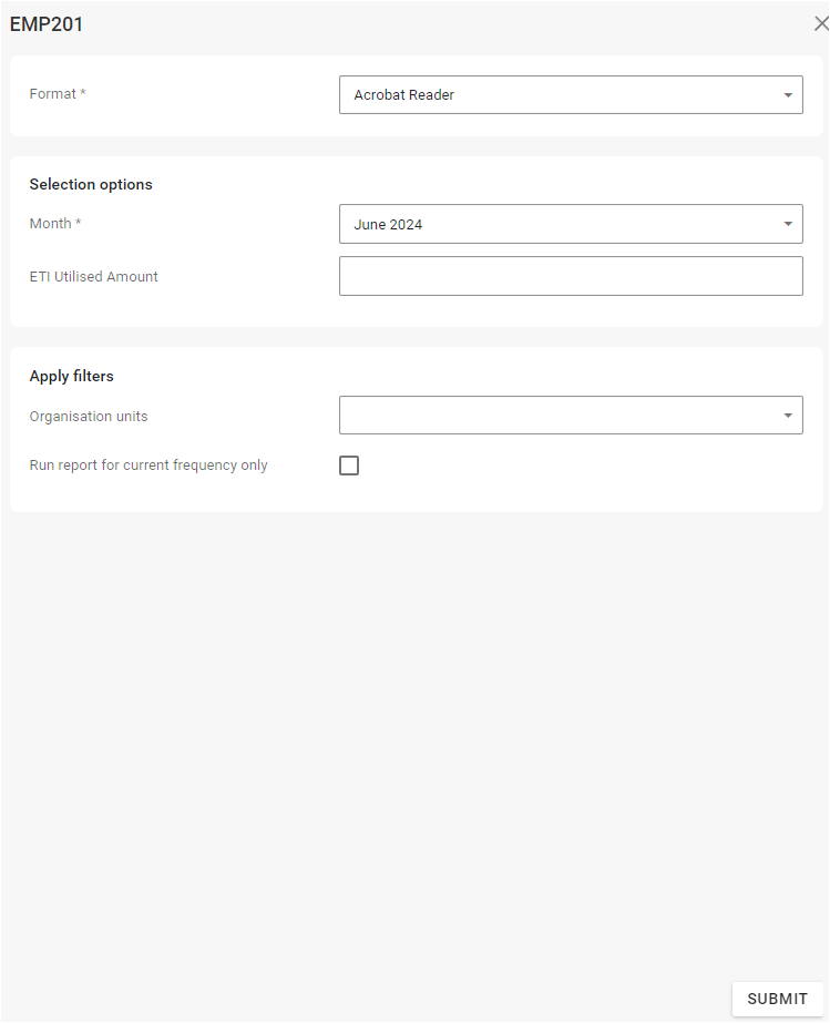 This feature is available on all Deel Local Payroll powered by payspace editions Financial Reconciliation Reports Navigate > Reports > Tax Certificate Run EMP201 Report Monthly PAYE, SDL, UIF and ETI values for payment to SARS. EMP201 Breakdown ...