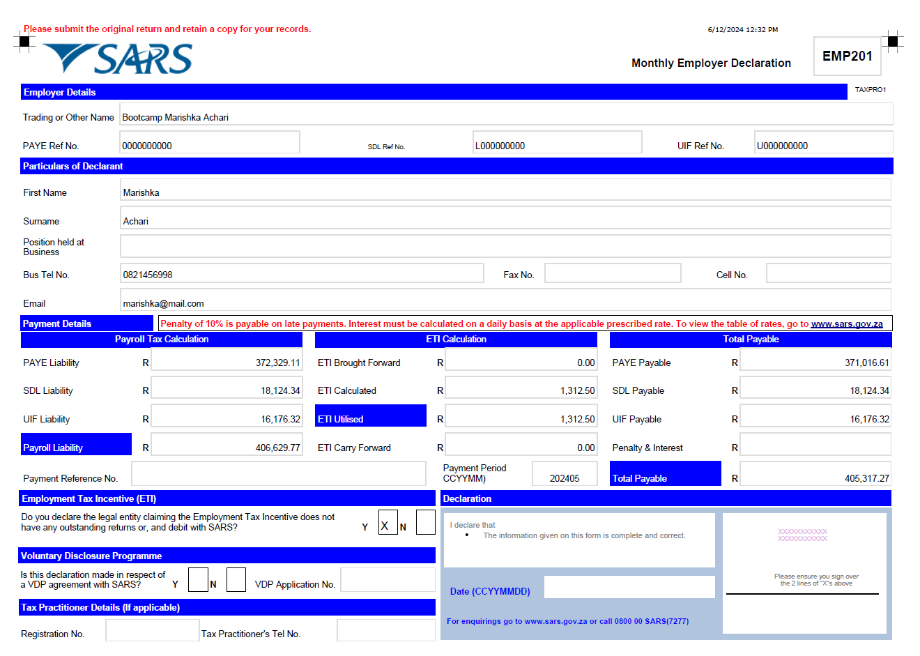 It is advised against submitting your payments to SARS with an EMP201 with a "DRAFT" watermark, as financial data may change due to recalculations in the open run, which will result in inaccurate payments being made to SARS. Related FAQ How do I ...