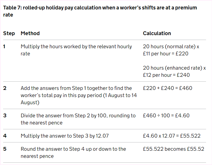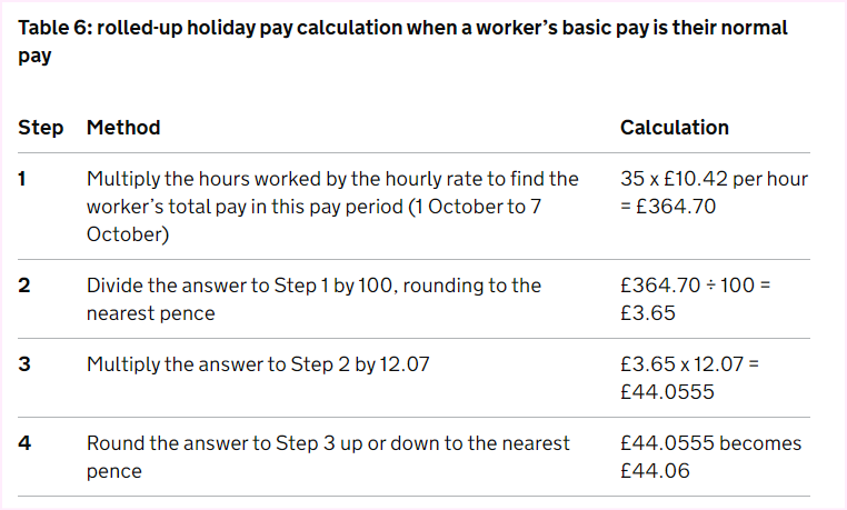 Tables 6 and 7 below set out how to calculate how much rolled-up holiday pay a worker could receive under different scenarios.