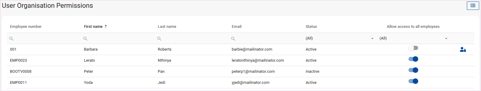 If a user is associated with an Organisation Hierarchy Unit or Region, their access will be limited to employees linked to the same Unit/Region.
