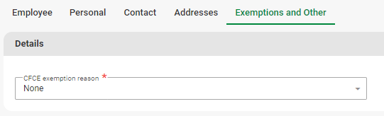 Employee > Basic Information > Basic Profile > Exemptions and other Tab