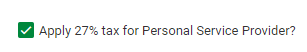 The system calculation will default to 28% (financial year ending 1 April 2022 to 30 March 2023). If the PSP should be taxed at 27% (financial year ending 31 March 2023 and after), enable the checkbox on the Tax Profile screen. Navigate > Employee > Basic Information > Tax Profile > Statutory Fields |