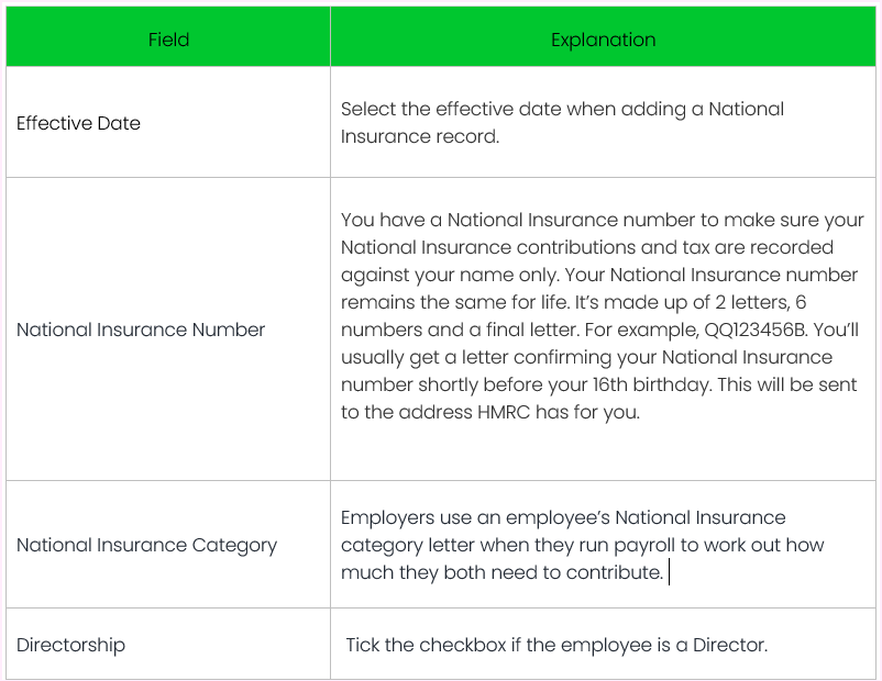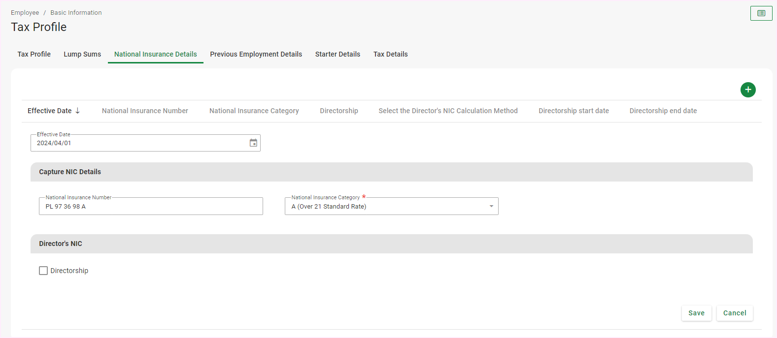 Navigate > Employee > Basic Information > Tax Profile > National Insurance Details