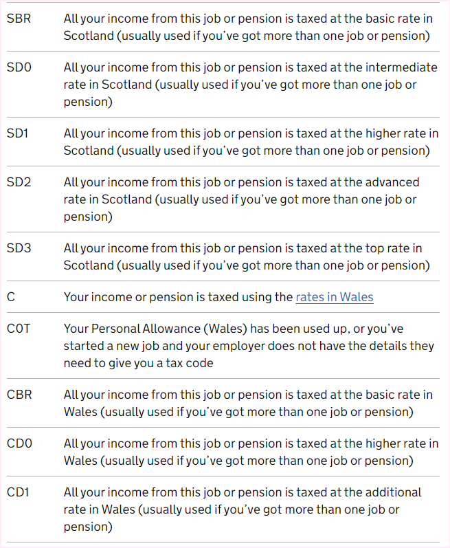 This type of tax code is usually applicable when the employee is paying tax that they owe from a previous year through their wages or pension, or receiving benefits that the employee needs to pay tax on - these can be state benefits or company benefits.