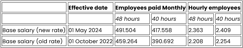 Following the meeting held on 31 May 2023 relating to the general increase in wages between the stakeholders which are the unions of workers, the Ministry of Labour, and respective employers, the following were adopted: Transport allowance increased ...