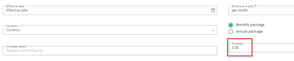 - The employee package rate has to be completed on the Pay Rate screen