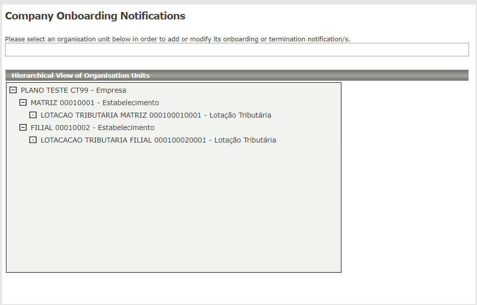 Please select an organisation unit below in order to add or modify its onboarding or termination notifications: This statement indicates that the user must select an organisational unit to add or modify the notifications associated with that unit.