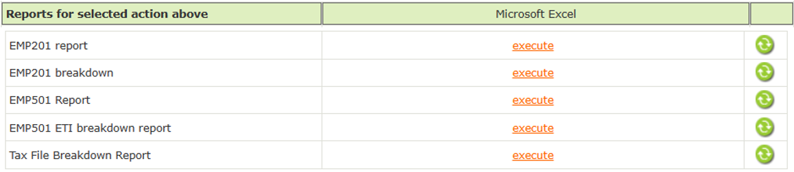 Detailed listing of employee Tax, SDL, UIF and ETI values that make up the EMP201 Report.