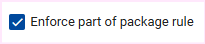 The "enforce part of package rule:" checkbox under extra options can be enabled. If this field as well as, "allow to be part of package" checkbox is selected, the option to overwrite the part of package-indicator when processing a component on the Recurring Components Screen, will not be available.
