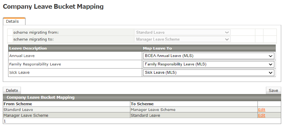The Leave Bucket Mapping screen allows you to transfer employee leave balances between leave schemes. Should an employee be linked to a new leave scheme, this will result in the employee’s leave balance being automatically transferred to the new leave scheme, without having to process leave adjustments.