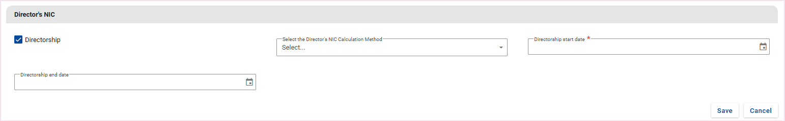 This field is only applicable if the Directorship is calculated using the Standard Annual Earnings Limit. The end date will be used to count the number of weeks the Directorship is active for in the current tax year and use the weeks / months to pro-rate the NIC Limits.