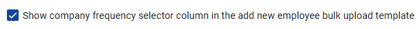 Enabling the setting will move the 'Frequency' column on the Pay Rate sheet on the Bulk Upload template to the Basic Profile sheet.