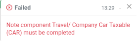 The component is used to store the value of the taxable portion of the Travel Allowance component, which forms part of the employees Year To Date taxable earnings. If this component is not advised, the system could incorrectly calculate the tax for the employee as it uses the annualised tax calculation method. The below error is a validation error that will appear when an employee has a travel allowance/ company car, and has to capture the taxable portions so that the employee's tax is calculated correctly.