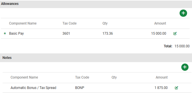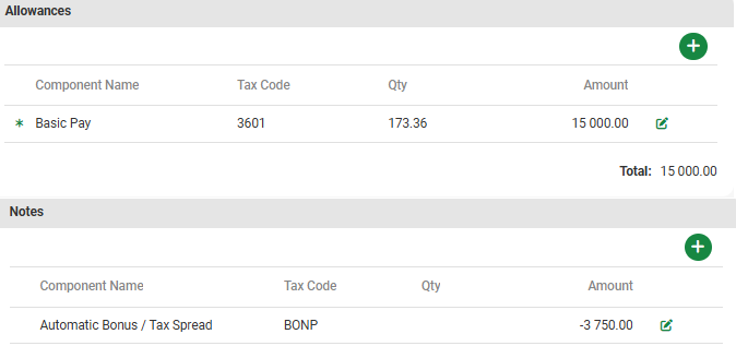 July 2024 to February 2025 [8 months] | 15000.00 / 8 = 1875.00 [Automatic Bonus / Tax Spread]