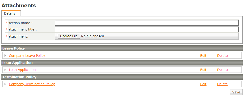 Company Documents have to be added on the Company Documents screen before employees can be granted access to view them on ESS.